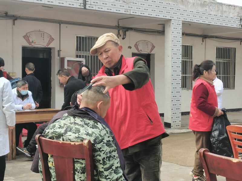 志愿者们放弃休息日的闲暇,早早来到敬老院迅速分工展开工作。厨房组的姐妹们切肉的切肉,洗菜的洗菜,一眨眼的功夫锅里的肉香就窜出来了,这个锅里煮着肉,那个锅里把蘑菇蛋汤煮,煮好蛋汤来炒面,一个多小时为敬老院的老人们准备好了七菜一汤。义工张子香给需要理发的老人们理发,从活动开始到结束一直忙不停,这技术活我们只能在旁边干着急,辛苦张叔了。