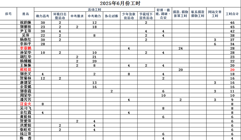 2025年6月份工时统计