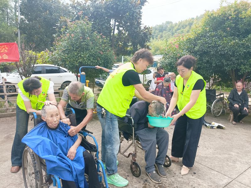 活动中,义工协会志愿者全程以专业、贴心的服务为核心,为院内老人提前送上节日温暖与专属关怀,助力活动在温馨氛围中圆满落幕。活动现场,宿松县义工协会志愿者围绕计生特殊家庭老人的生活需求与精神需求,构建起全方位关怀防线。志愿者领队精准统筹全局,从服务衔接、人员调配到流程把控全程细致入微,确保每一项扶助服务高效落地;美容美发协会的理发师携带专业工具,耐心询问老人喜好,精心修剪发型,另有义工志愿者同步为老人轻柔洗头、细致修剪指甲,指尖动作满含呵护,让老人们瞬间以清爽整洁的形象展露笑颜;厨房服务志愿者默契分工,洗切、烹饪、分餐有条不紊,用热气腾腾的餐食保障老人们吃得安心舒心;更有志愿者化身 “文艺达人”,带来黄梅戏选段、萨克斯演奏、相声等精彩节目,熟悉的乡音与诙谐的表演,逗得老人们笑声不断,切实丰富了老人的精神生活。此外,志愿者还协助医疗服务队引导老人咨询,耐心陪伴行动不便的老人参与活动,让关怀无死角。