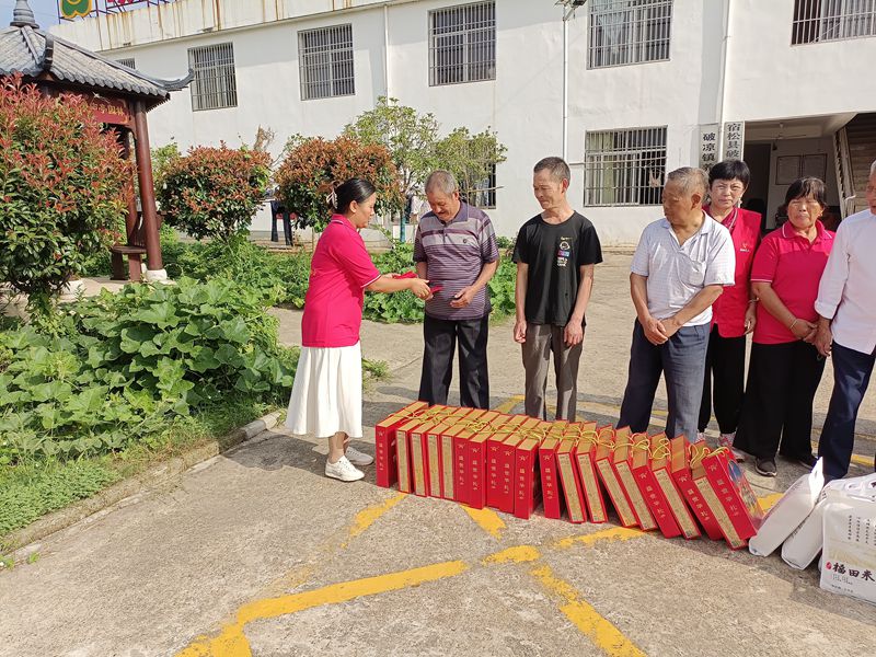 活动当天,义工李章鹏女士及爱心人士和关爱志愿服务队早早来到敬老院,将准备好的月饼、大米、食用油整齐放好,随后将慰问品送到每位老人手中,对行动不便的老人,义工主动走进房间,细心为老人整理内务和老人谈心,耐心询问老人的身体状况和生活需求。