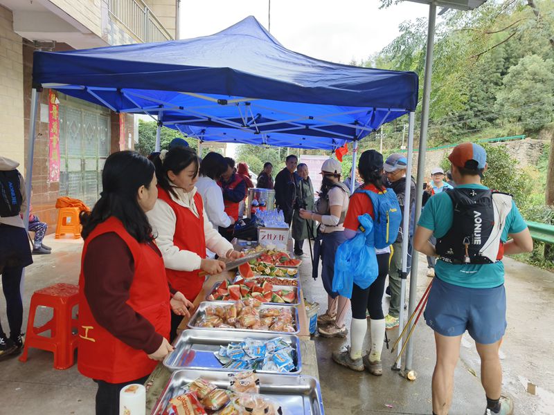 赛程中段补给站,义工们融入诗歌元素,水果、姜茶、能量棒旁放着写有诗句的卡片。年轻选手读着诗句笑了,义工小李说想让选手感受诗歌故乡的魅力,赞助商代表也加入了服务的行列。