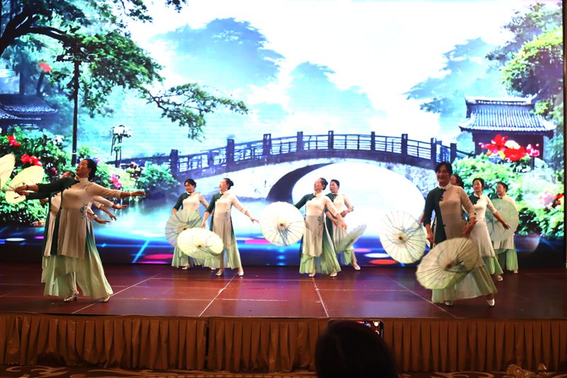 在随后的文艺演出中,舞蹈《中华全家福》、《故乡情》,黄梅戏联唱《看故园》、《民女名叫冯素珍》、《劝小姐莫悲伤》,诗朗诵《十年暖程》,歌曲《说唱脸谱》、歌伴舞《温暖你的心》、古筝《战太风》以及老人们演唱的歌曲、顺口溜、互动游戏等精彩纷呈,赢得大家阵阵掌声。演出还特别邀请了宿松籍著名歌手陈卿带来了经典歌曲《家在宿松》、《同行的人》,演出在手语舞《感恩的心》中落下帷幕。