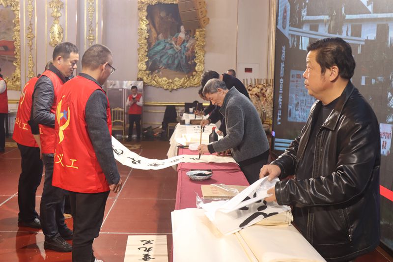 同样精彩的,是宿松县书画家们挥毫泼墨的环节。当笔墨纸砚铺陈开来,中华传统文化中深沉厚重的力量便悄然流淌。特别是我高中数学陈晓城老师双手同时书画的绝艺,更是将理性思维与艺术才情完美融合,令人叹为观止。而我认捐陈老师的《积善成德》与蒋鸿志老师的《春风惠我》,这两幅墨宝于我而言,早已超越了艺术品本身。