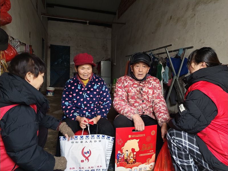 在2026年的新春佳节即将来临之际,宿松义工开展为期10天的“暖心家园”春节上门慰问活动。这次共慰问了全县202户计生特殊家庭,给每户家庭安排了100元红包、猪肉、南方黑芝麻糊、正味麦片和春联等。
