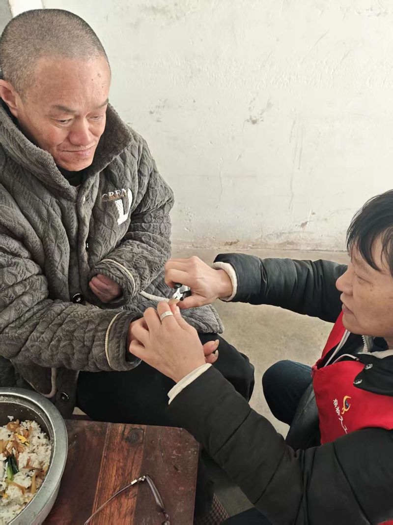 从2月1日开始,“暖心家园”服务队员顶着凛冽的寒风,冒着濛濛细雨,把每一份慰问物品和问候送到计生特殊家庭老人家中。每到一户,服务队员先为老人送上准备好的红包、猪肉、黑芝麻糊、麦片、对联等。然后陪老人聊天唠嗑,寻问老人的身体情况,聆听他们的故事,让他们感受到社会的温暖。有的服务队员还帮老人打扫卫生,检查电路,叮嘱用电用火安全事项;有的服务队员帮老人洗衣做饭,修剪指甲,促膝谈心;用行动温暖老人的心。