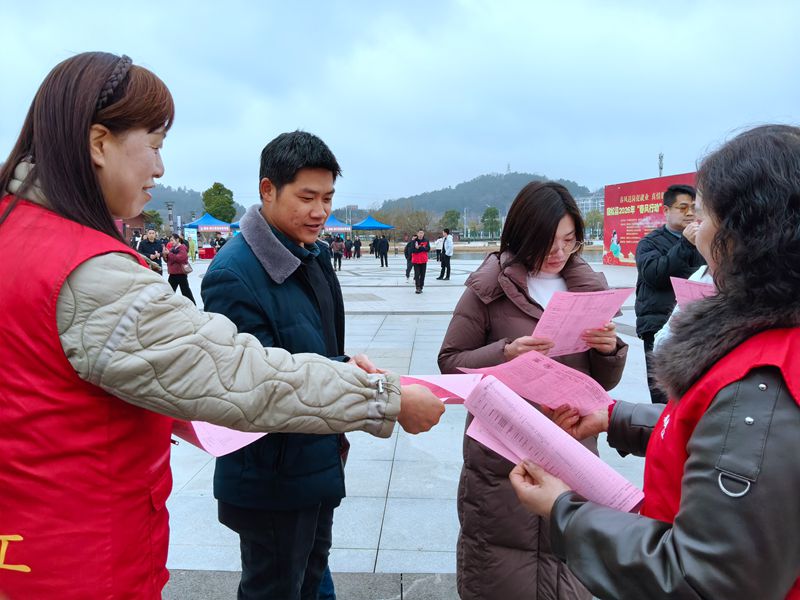 2月27日上午,宿松县龙湖公园人头攒动、气氛热烈。由中共宿松县委员会、宿松县人民政府主办,多部门联合承办的"春风送岗促就业,真情服务暖民心"大型招聘会在此隆重举行。本次活动旨在贯彻落实就业优先战略,为求职者和用人单位搭建高效对接平台,助力重点群体实现"家门口"就业。