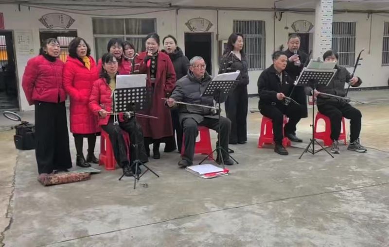 宿松老年大学的老师们为敬老院的爷爷奶奶们准备了精彩的节目一一一《黄梅戏》选唱,将活动氛围推向高潮。