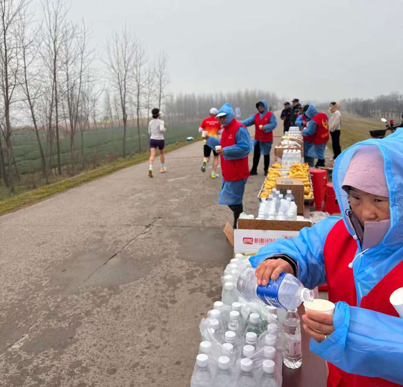 赛事期间,小孤山脚下、同马大堤沿线,义工们的身影随处可见。他们在各服务点位耐心清点物资,解答路线咨询;在补给点为运动员递上饮用水与能量补给,传递贴心关怀;在赛道沿途协助维护秩序,提醒选手注意安全,保障赛道通行顺畅。赛道沿线,志愿者们主动搀扶体力不支的选手,加油鼓劲;遇到突发状况,迅速响应、协同处置,以专业细致的服务赢得选手与工作人员的一致好评。